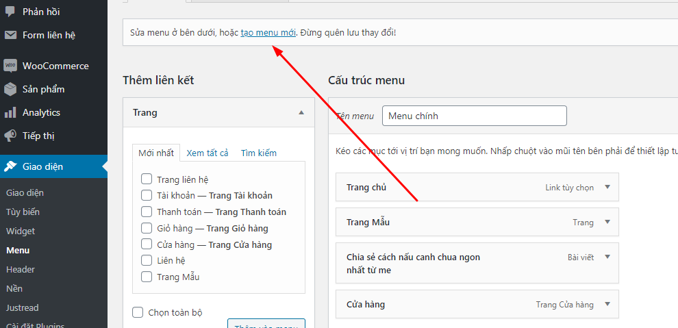 Cách 1: Tạo menu trong WordPress mà không cần biết code