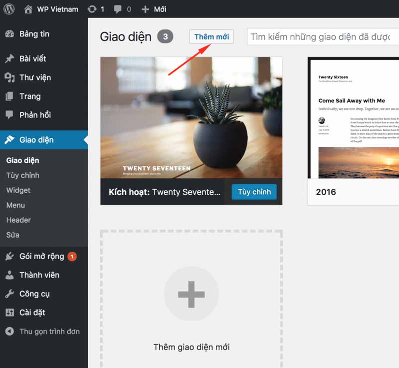 Cách 1: Cài đặt theme trực tiếp từ giao diện quản trị WordPress