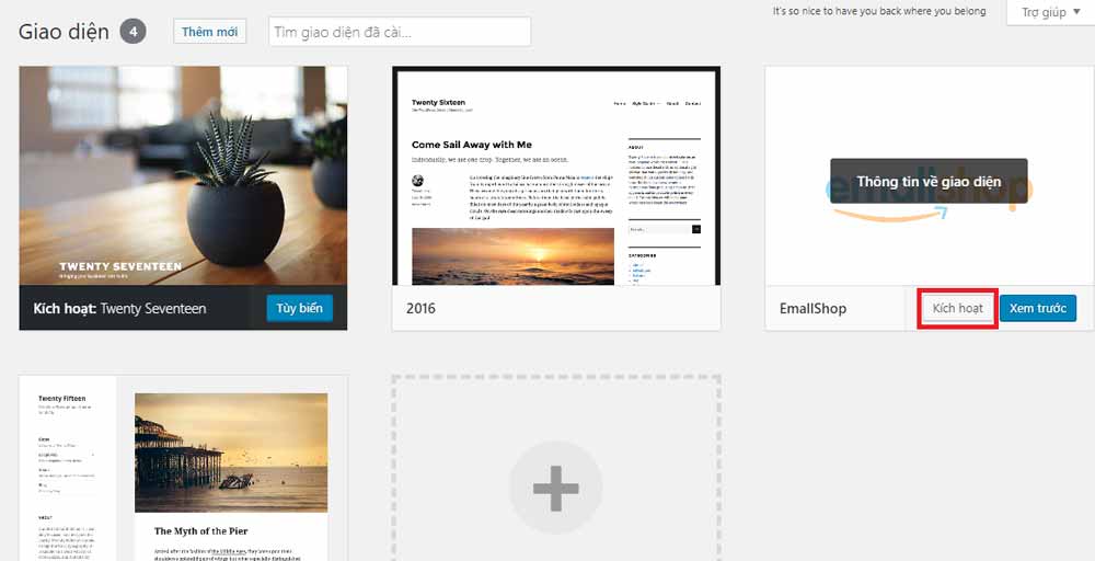 - Bạn chỉ nên kích hoạt một theme duy nhất trên mỗi website. Các theme không sử dụng vẫn sẽ nằm trong danh sách nhưng không ảnh hưởng gì đến giao diện chính.