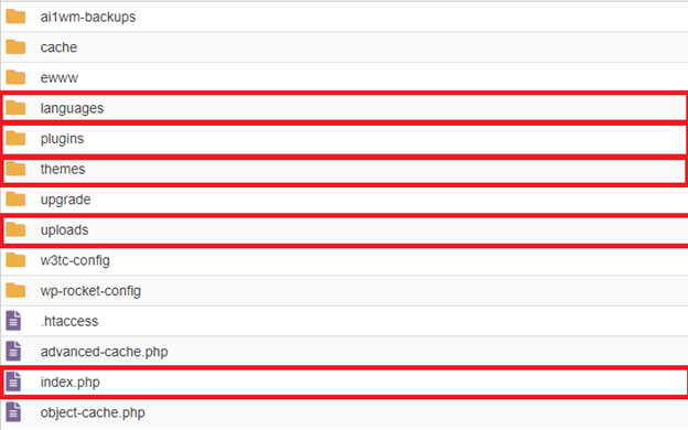 - /backups/: Lưu trữ bản sao lưu, thường do các plugin tạo ra như UpdraftPlus hay BackupBuddy.