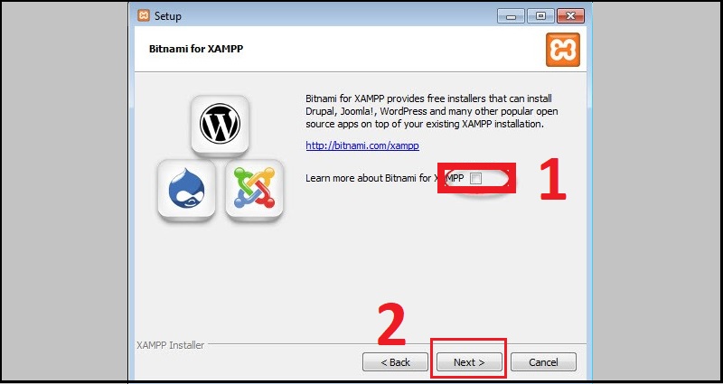 5. Lựa chọn cài đặt thêm Bitnami (công cụ cài nhanh WordPress, Joomla…). Bạn có thể bỏ chọn nếu không dùng đến.
