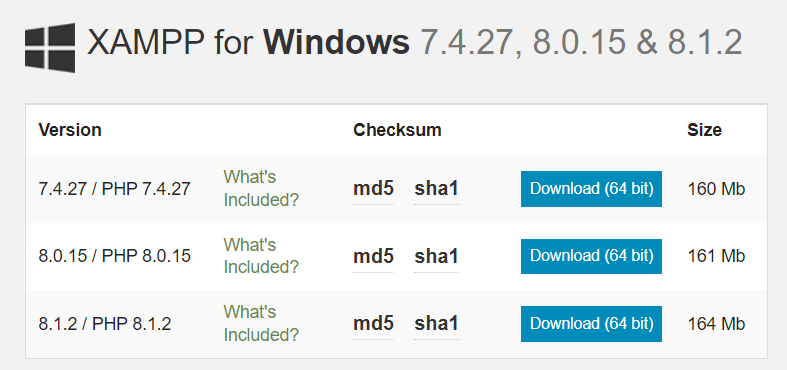https://www.apachefriends.org/index.html - Tại giao diện trang chủ, chọn phiên bản XAMPP phù hợp với hệ điều hành của bạn. Ở đây chúng ta chọn phiên bản dành cho Windows.