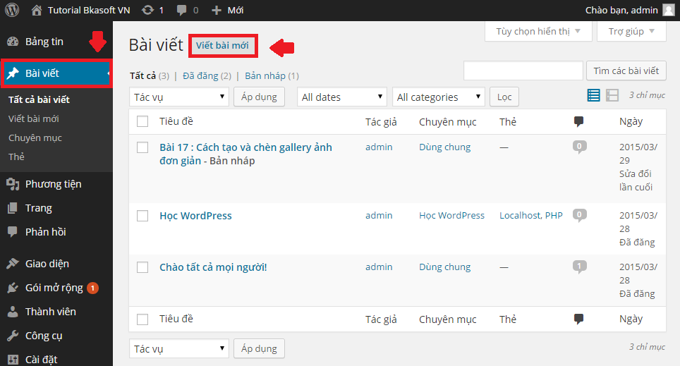 - Trên thanh menu bên trái, nhấn chọn “Bài viết”