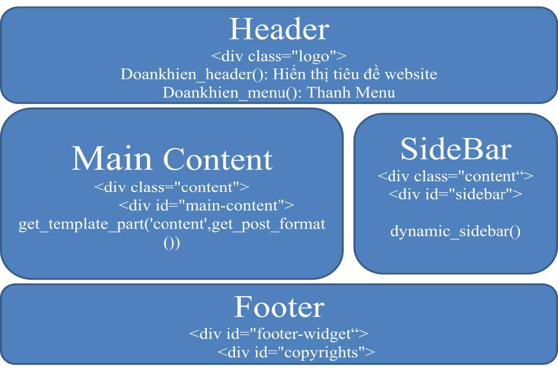 - Tạo các vùng widget như sidebar, footer