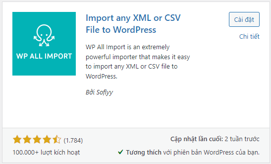 Bước 1: Cài đặt và kích hoạt plugin WP All Import