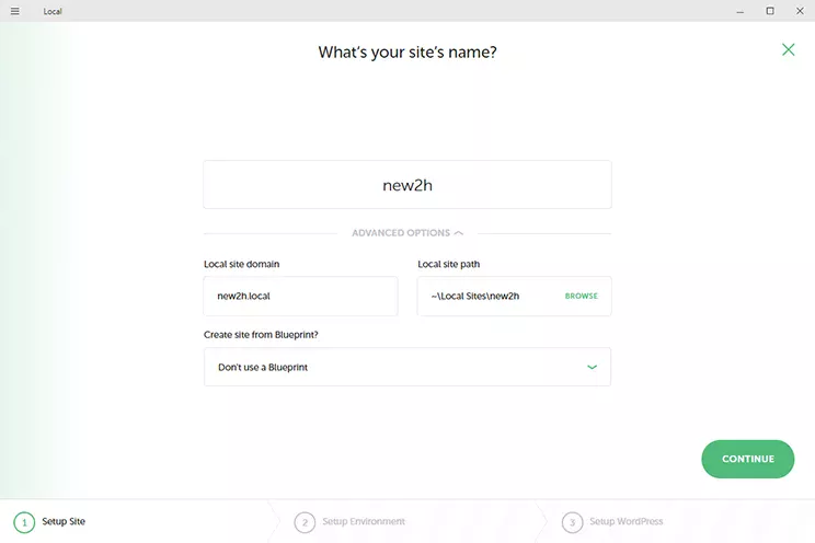 1. Mở LocalWP → Nhấn Create a New Site → Nhập tên website bạn muốn tạo.