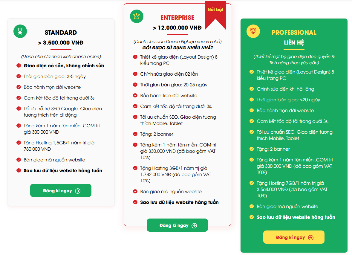 - Gói nâng cao: Trên 20 triệu đồng. Dành cho các dự án phát triển web quy mô lớn, nhiều chức năng nâng cao, kết nối API, tùy chỉnh sâu.