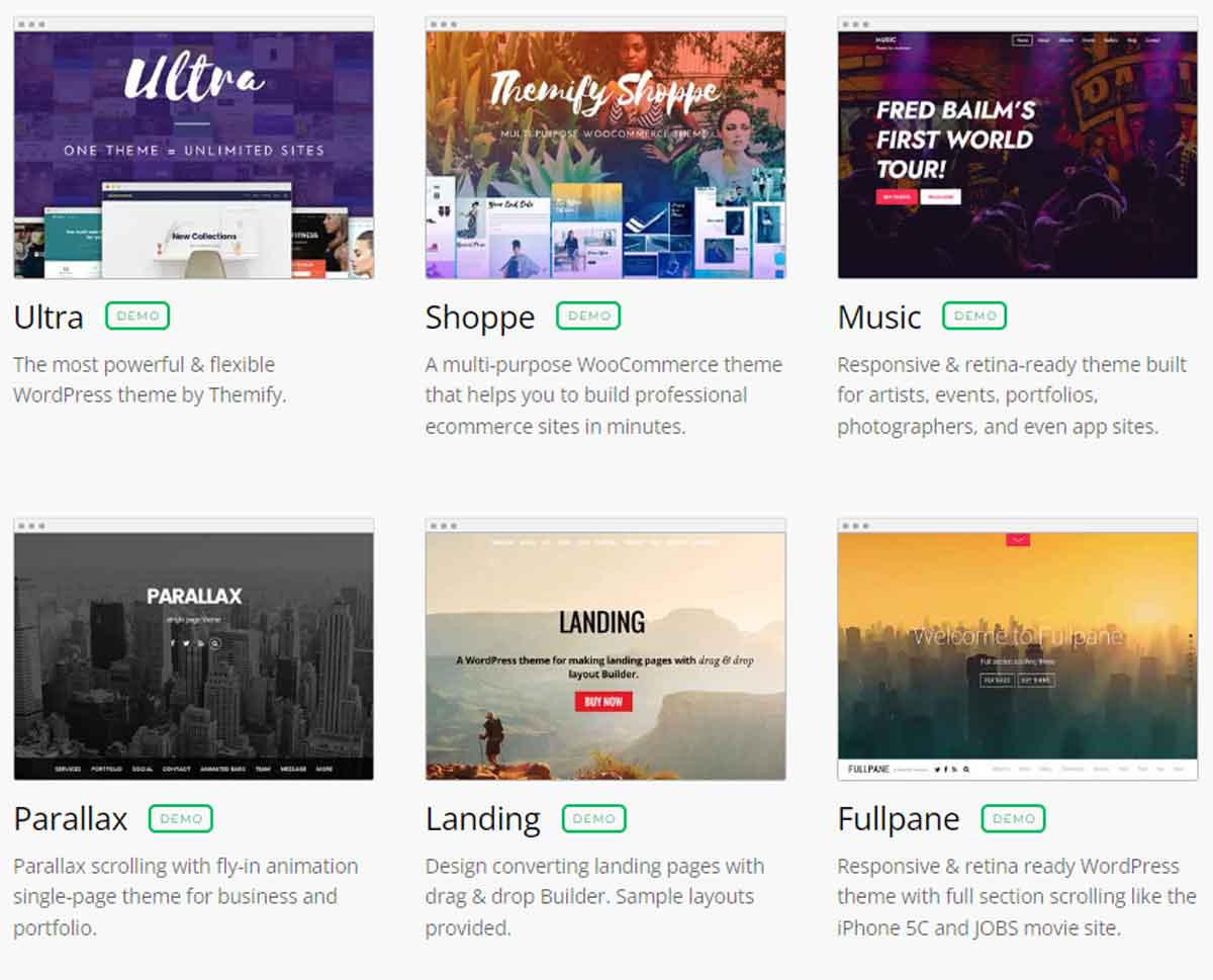 Cung cấp nhiều theme cho ngành nghề cụ thể như bất động sản, nhà hàng, âm nhạc… Kết hợp với plugin Themify Builder giúp bạn dễ dàng thiết kế theo ý thích.