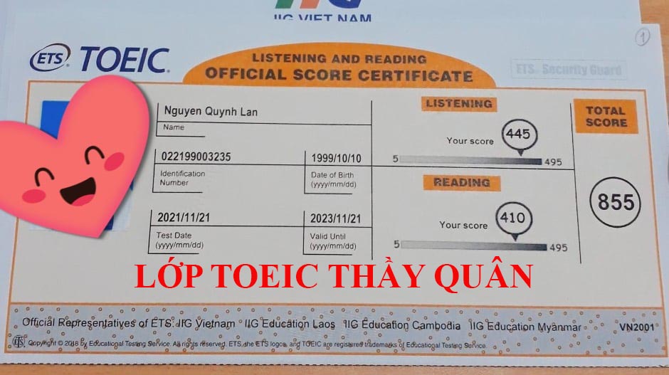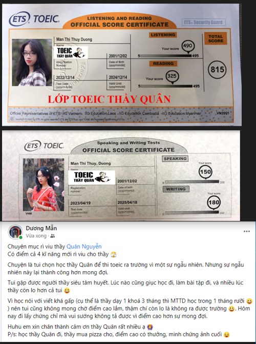 Cùng xem những tâm sự và phản hồi chất lượng của học viên đã học tại lớp TOEIC THẦY QUÂN nha!